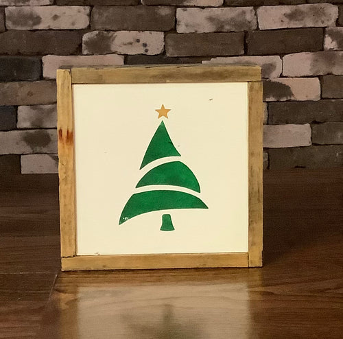 CHRISTMAS SIGN WITH GREEN TREE 6 1/8” x 6 1/8