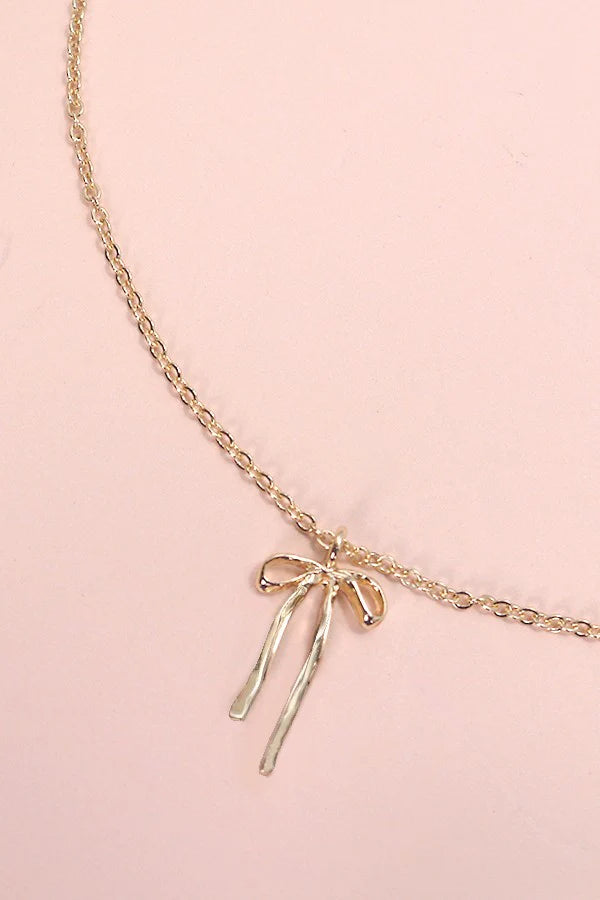 Dainty and trendy, this gold long bow necklace adds the perfect touch of charm to any outfit. ✨ A sweet and simple statement piece you’ll want to wear every day!