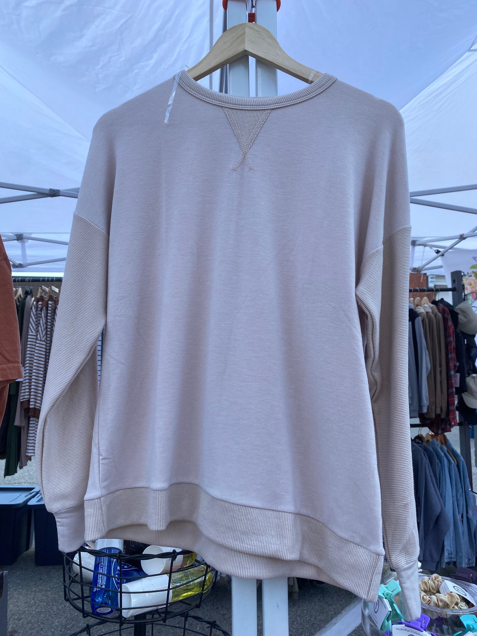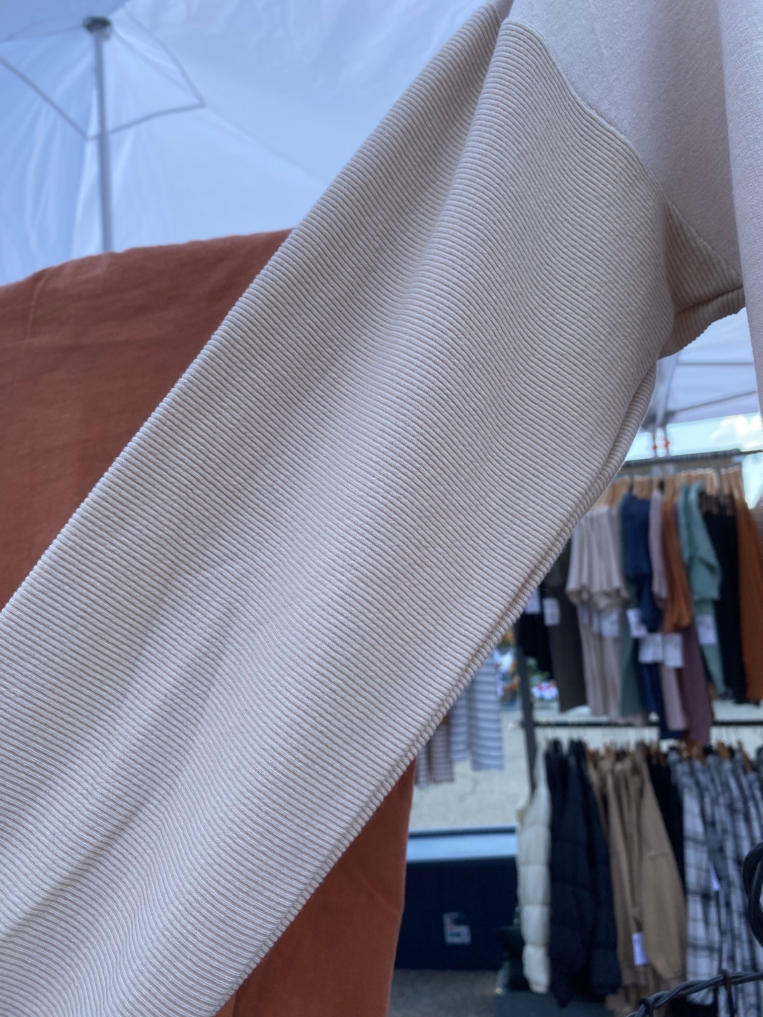 Enhance your everyday wardrobe with our Natural Everyday Top. This versatile piece features a wide neck and ribbed sleeves, providing a comfortable fit with a touch of texture. Its natural color and soft fabric make it a perfect choice for any occasion. Upgrade your style with this must-have staple.